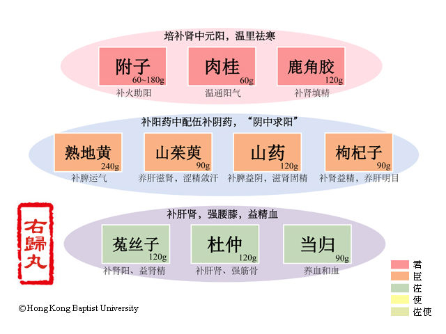 右归丸中地附桂,山药茱萸菟丝归,