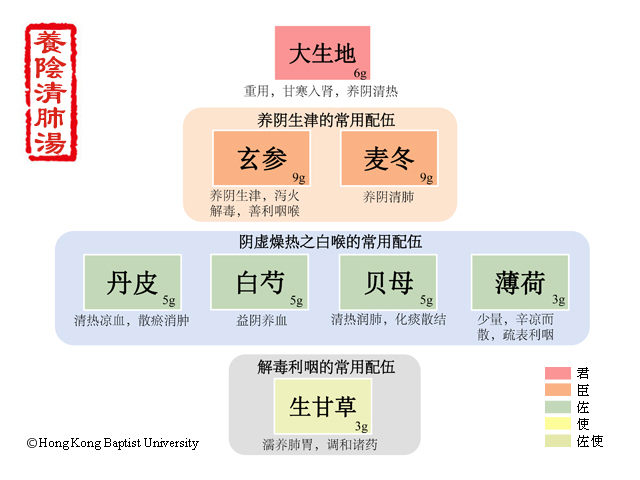 养阴清肺是妙方,玄参草芍冬地黄,