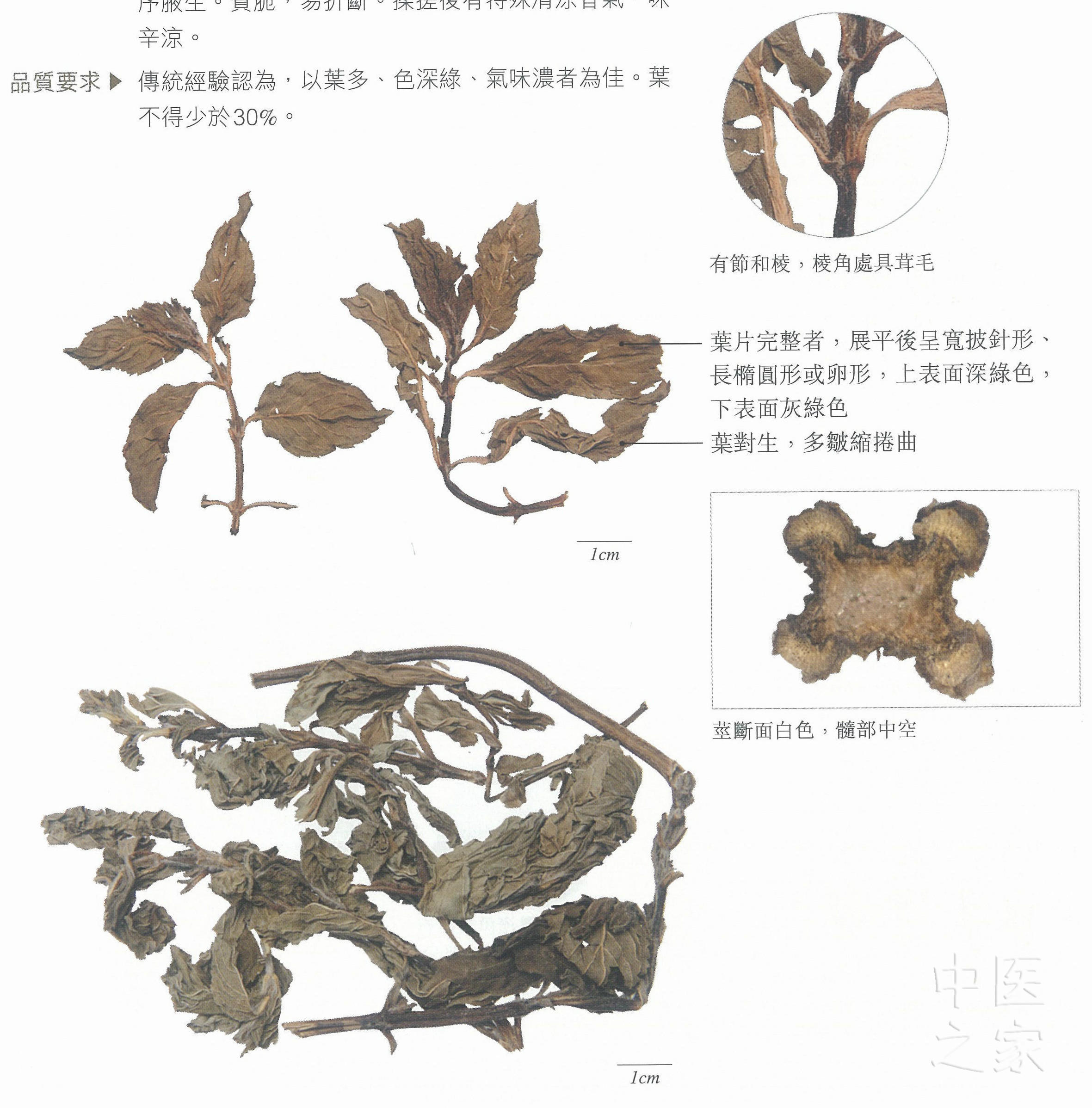 辛、微苦,微凉。入手太阴、足厥阴经气分。散风热,清头目,利咽喉口齿耳鼻诸病。治心腹恶气,胀满霍乱,小儿惊热,风痰血痢,瘰疬疮疥,风瘙瘾疹,亦治蜂虿蛇蝎猫伤。薄荷,猫之酒也。
