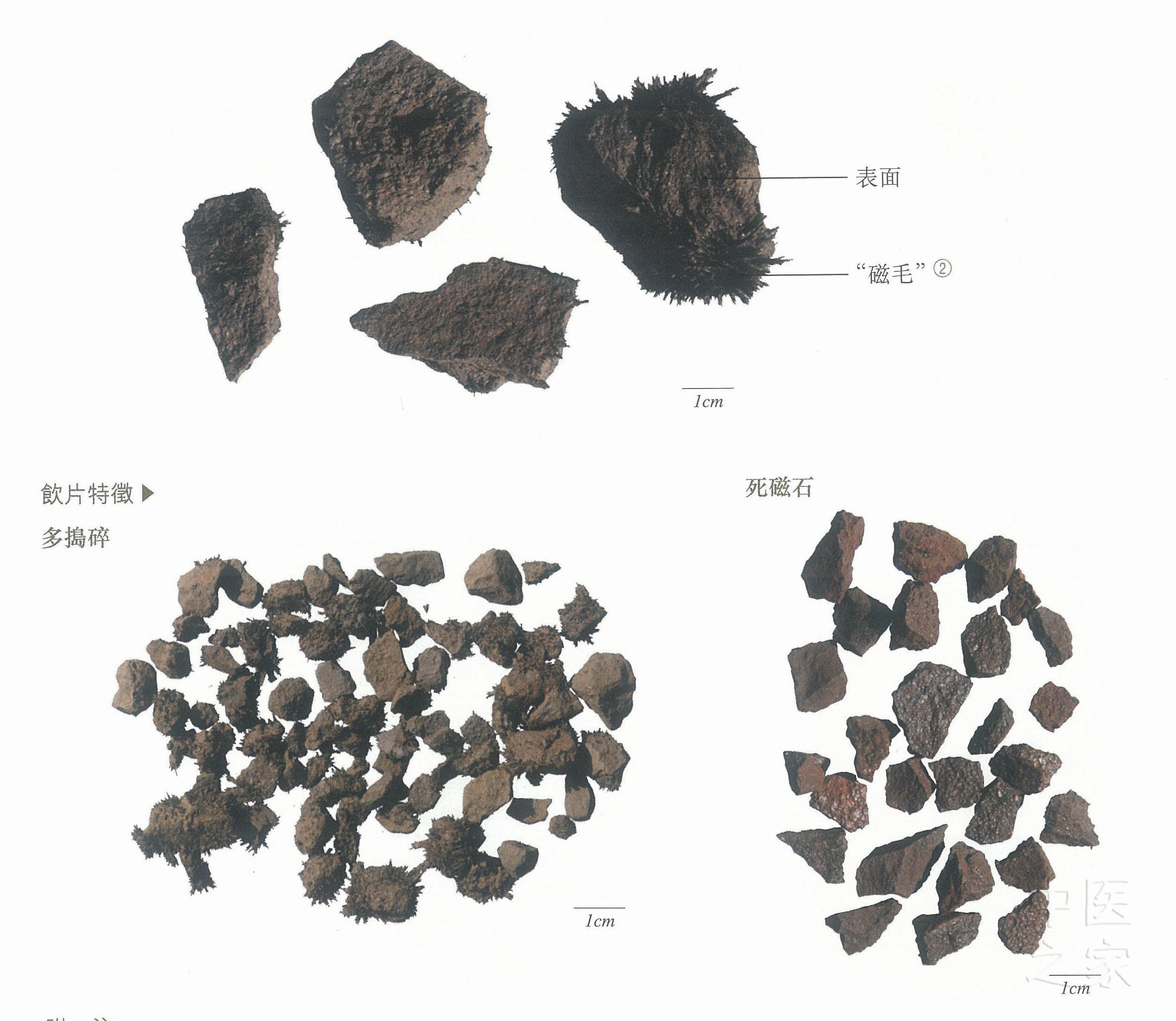 磁石,味辛咸,性寒,无毒,入肾经。主周身湿痹,肢节中痛,目昏耳聋,补劳伤,除烦躁,消肿毒,令人有子。能吸重铁者佳。柴胡为使,恶牡丹。