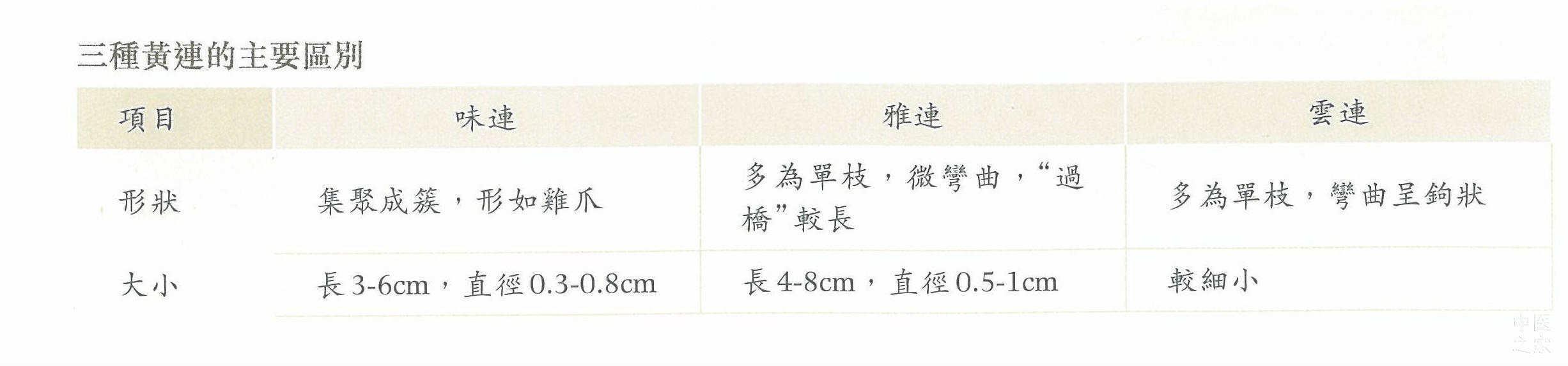 黄连,味苦,性寒,无毒,入心经。主心火炎,目疾暴发,疮疡红肿,肠红下痢,痞满泄泻,小儿疳热,消中口疮,惊悸烦躁,天行热疾。黄芩、龙骨、连翘、滑石为使,恶菊花、芫花、玄参、白鲜、白僵蚕,畏款冬花,解巴豆、乌头毒,忌猪肉、冷水。