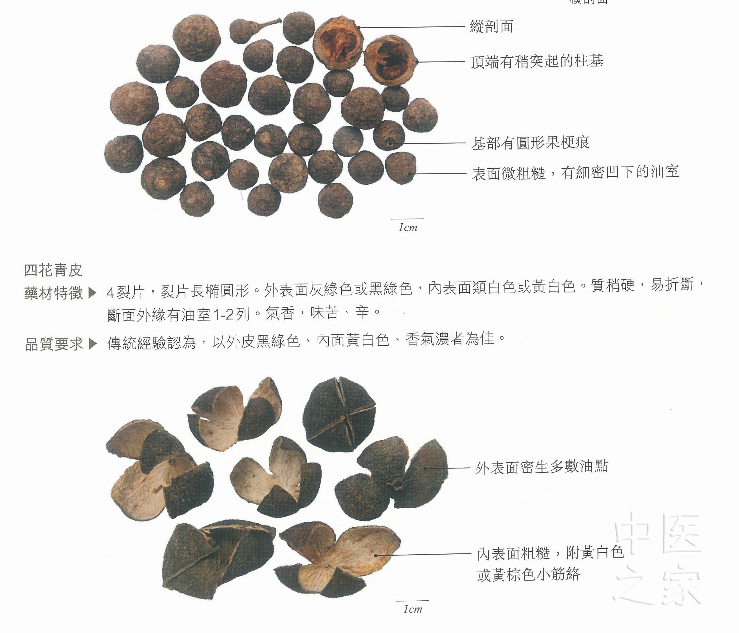 入脾除痰,疟家必用之品,故清脾饮以之为君。疝痛乳肿,丹溪曰:乳房属阳明,乳头属厥阴。乳母或因忿怒郁闷,厚味酿积,致厥阴之气不行,故窍不得出;阳明之血腾沸,故热甚而化脓。亦有其子有滞痰膈热,含乳而睡,嘘气致生结核者。初起便须忍能揉软,吮令汁透,自可消散。治法以青皮疏肝滞,石膏清里热,甘草节行浊血,瓜蒌消肿导毒,或加没药、橘叶、金银花、蒲公英、皂角刺、当归,佐以少酒,若于肿处灸三五壮尤捷。久则凹陷名乳岩,不可治矣。最能发汗,皮能达皮,辛善发散。有汗及气虚人禁用。陈皮升浮,入脾肺治高;青皮沉降,入肝胆治低。炒之以醋,所谓肝欲散,急食辛以散之,以酸泄之,以苦降之也。橘之青而未黄者,醋炒用。古方无用者,宋以后始与陈皮分用。