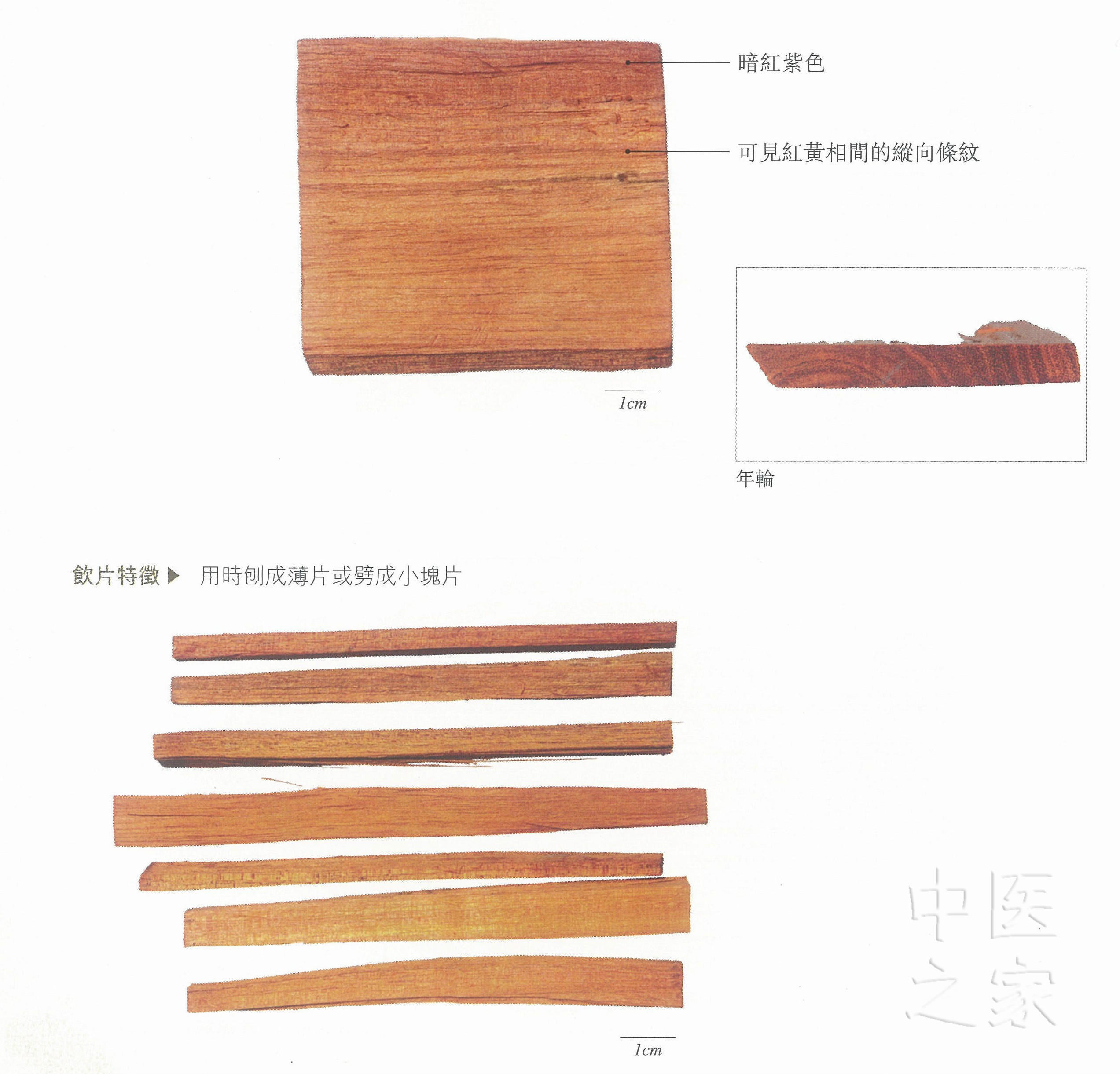 雷公云∶凡使,去上粗皮并节了。若有中心文横如紫角者,号曰木中尊色,其效倍常百等。