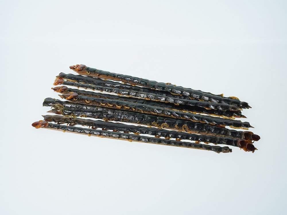 蜈蚣:拭净,除去头足,剪断用。