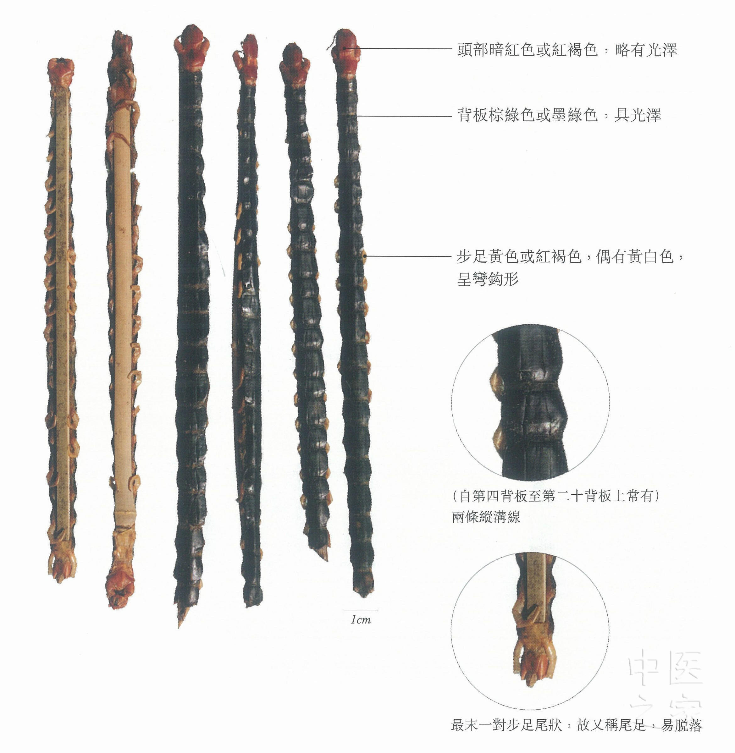 按:蜈蚣最似百足虫,第百足虫较细密,死而不僵,头上有白肉,面及尖嘴,其毒更甚,勿宜轻用。