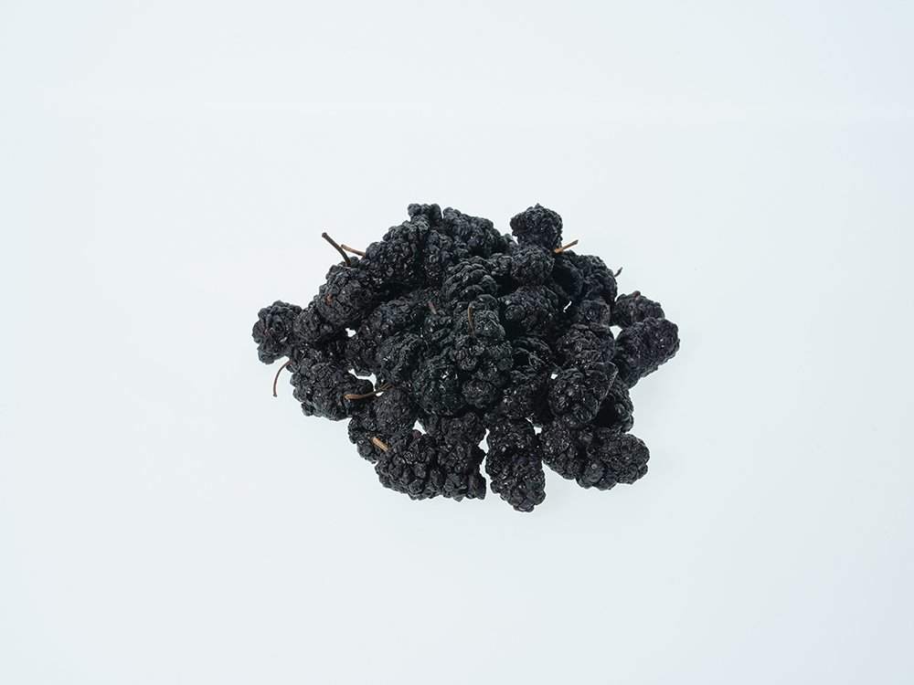 桑椹,甘凉。色黑入肾而补水,利五脏关节,安魂镇神,聪耳明目,生津止渴,炼膏,治服金石药热渴。利水消肿,解酒乌髭。