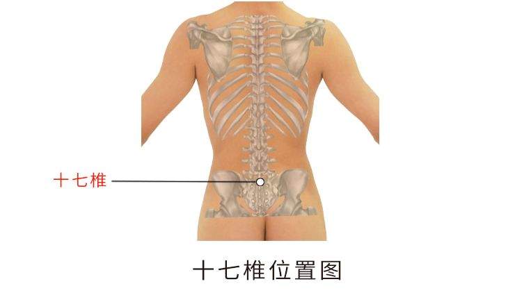 中医学称第一胸椎为一椎,第五腰椎为十七椎,穴在其棘突下,故名十七椎。