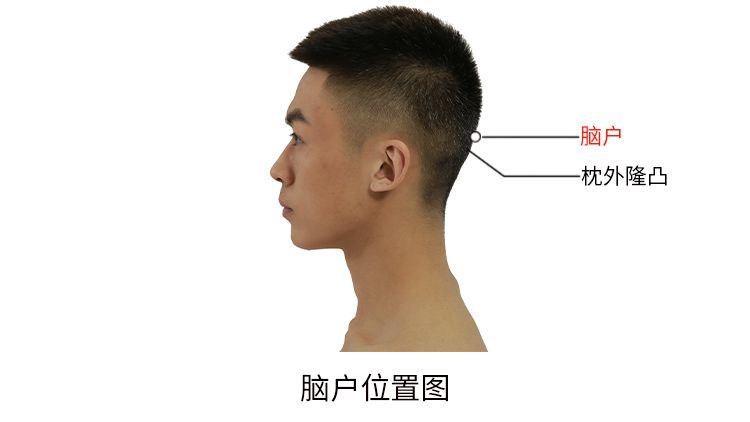 简便定位:脑户穴位于人体的头部,后发际正中直上2.5寸,风府穴上1.5寸,枕外隆凸的上缘凹陷处。