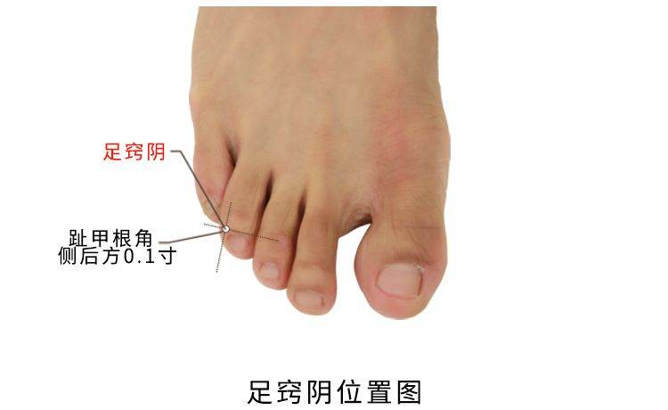 足窍阴穴,穴位,位于人体的第4趾末节外侧,距趾甲角0.1寸。主治偏头痛,目眩,目赤肿痛,耳聋,耳鸣,喉痹,胸胁痛,足跗肿痛,多梦,热病。