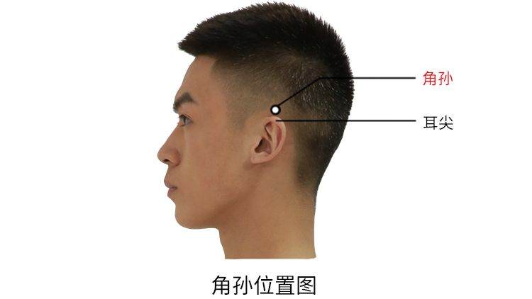角孙,经穴名。出自《灵枢·寒热病》。属手少阳三焦经。位于头部,耳尖正对发际处。有耳上肌,颞浅动、静脉耳前支,布有耳颞神经分支。主治头痛、项强、痄腮、齿痛、目翳、目赤肿痛。平刺0.3-0.5寸。