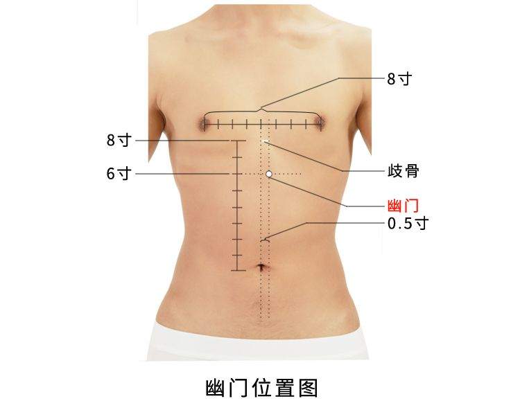3、《经穴释义汇解》:“穴在巨阙两旁各五分凹陷处,当冲脉至胸中散处,属冲脉、肾经交会之穴。因两阴交尽称幽,故以为名。”