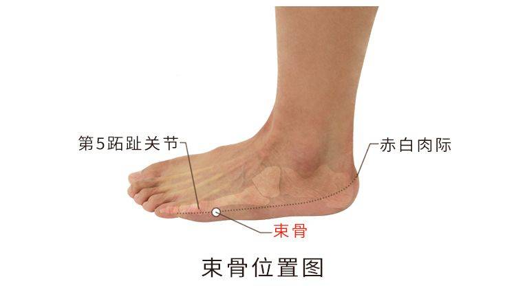 束,指收束。穴在第五跖骨小头后下方,由京骨穴至本穴,第五跖骨渐成收束状,故以为名。