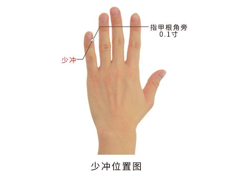 少冲,经穴名。出自《针灸甲乙经》。别名经使、手少阴、经始。属手少阴心经。位于手指,小指末节桡侧,指甲根角侧上方0.1寸。有指掌固有动、静脉所形成的动、静脉网,布有指掌侧固有神经。主治心悸、心痛、癫狂、昏迷、热病、胸胁痛。浅刺0.1寸,或点刺出血。