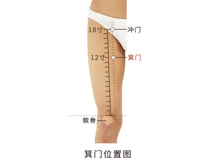 2、《医经理解》:“箕门,在血海上六寸,在鱼腹上越两筋间动脉应手,为箕坐则此穴两张如门也。”