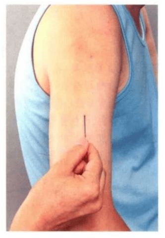 手臂自然下垂取之,在正脊 一 穴直上四寸肱骨上处是穴。