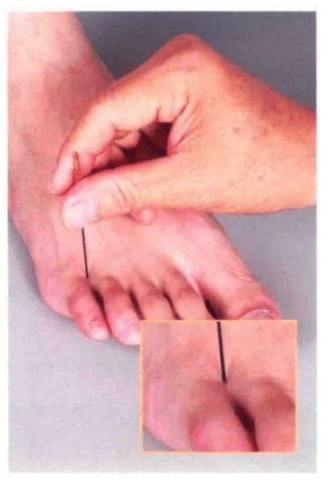 当第四跖骨与第五跖骨之间,距跖骨与趾关节五分处是穴 。