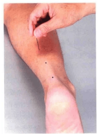 当足后跟筋之正中央上,距正宗穴上二寸处是穴。