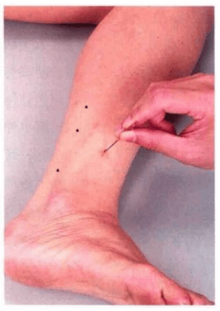 当外踝骨尖直上三寸,向前横开一寸处是穴。