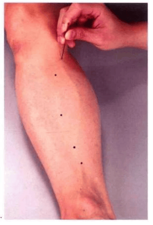 当膝下内辅骨下陷中,在胫骨头之内侧,去膝关节二寸五分是穴。