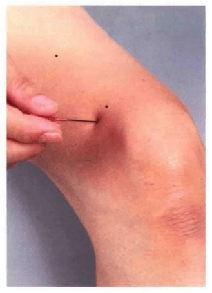 在膝盖骨外侧上角之直上一寸处是穴。