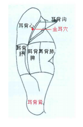 在耳壳背之外缘上端取之。