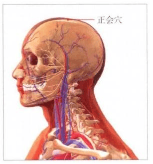 正坐,以细绳竖放头顶中行, 前垂鼻尖,后垂颈骨正中,另 以一绳横放头顶,左右各垂耳尖,此两绳在头顶之交叉点是穴。