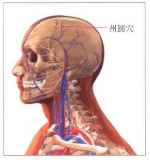 当正会穴向右及左旁开一寸 三分处是穴(赖氏增加:左右各一穴)。