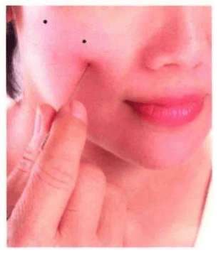 在马金水穴之直下四分,约与鼻下缘齐处是穴。