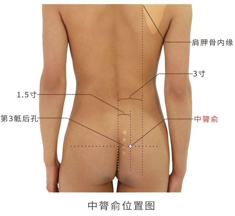 定位: 在骶部,当骶正中嵴旁1.5寸,平第3骶后孔。