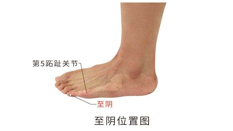 在脚小趾头旁边,趾甲旁边的穴道叫至阴。至阴穴是膀胱经的子穴,膀胱经是阳经,所以是金水木火土,所以膀胱经真正的母穴是至阴。但是,因为补井当补合,所以我们用委中来取代它。至阴穴有个特殊的治症,就是治疗胎位不正。胎位不正的时候,针下去很快哦,二十四小时以后,慢慢就回正了。在下针时,当然不要拿三寸针扎下去,这针会倒嘛,拿一寸小针刺下去就好了,因为在脚趾头的旁边,肉比较少。这是膀胱经的最后一个穴道。