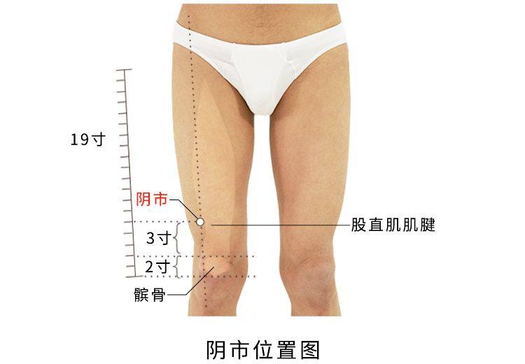 备注: 本穴因汇集的经水多而性寒凉,地部经水较少气化,其功用即为汇聚上源经水并传输给胃经下部经脉,如在本穴施以艾灸则会改变本穴固有的寒凉特性,促使穴内经水的气化,穴内的经水则会因此而变得干少,经水不足也就不能濡养胃经梁丘穴以下经脉诸穴,故而经书对阴市穴作出禁灸的规定。