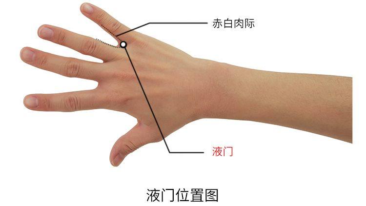 1)液门。液,液体也,经水也。门,出入的门户。液门名意指三焦经经气在此散热冷降化为地部经水。本穴物质为关冲穴传来的凉湿水气,凉湿水气至此之后则快速散热冷却,冷却后的水湿归降地部,故名液门。2)三焦经荥穴。荥,极小的水流也。本穴物质为关冲穴传来的凉湿水气,至本穴后散热冷降为地部经水,所生之水量极小,故为三焦经荥穴。3)本穴属水。属水,指本穴气血物质运行变化表现出的五行属性。本穴物质为关冲穴传来的凉湿水气,在本穴的变化为散热冷降,表现出水的润下特征,故其属水。