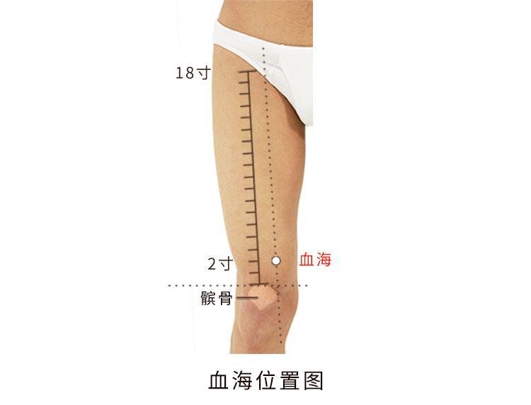 倪海厦老师:注:按在这个犊鼻,手掌正好把整个膝盖骨盖住,盖住以后,大拇指尖到处、肌肉最高点的是穴。女人痛经,不管是滴漏不止或是月经不来,都可以在血海上治,左右捻转无虚实补泻。下针:一寸。痛经三穴:血海、三阴交、中极,来月经时为最佳时机。