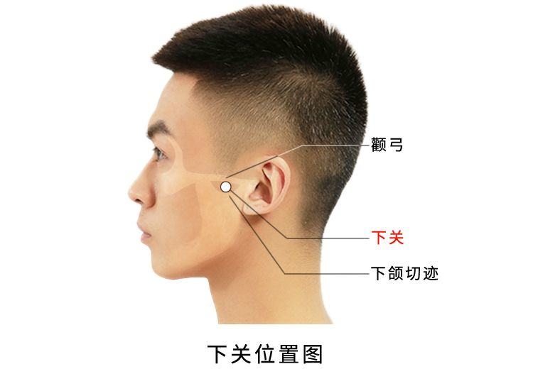 下,指本穴调节的气血物质为属阴、属下的浊重水湿。关,关卡。下关名意指本穴对胃经上输头部的气血物质中阴浊部分有关卡作用。本穴物质为颊车穴传来的天部水湿之气,上行至本穴后,水湿之气中的浊重部分冷降归地,本穴如有对上输头部的气血精微严格把关的作用,故名下关。