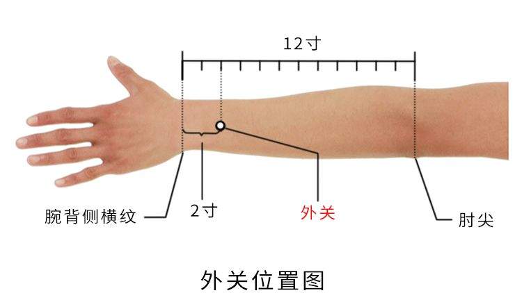 1)外关。外,外部也。关,关卡也。外关名意指三焦经气血在此胀散外行,外部气血被关卡不得入于三焦经。本穴物质为阳池穴传来的阳热之气,行至本穴后因吸热而进一步胀散,胀散之气由穴内出于穴外,穴外的气血物质无法入于穴内,外来之物如被关卡一般,故名外关。2)手少阳阳维之会。本穴物质为吸热后的胀散之气,此气外出本穴后交于阳维脉所在的天部层次,故为手少阳阳维之会。3)三焦经络穴。络,联络也。本穴输出的物质为天部的阳热之气,它不光输向本经各穴所在的天部层次,它还外传于手厥阴心包经所过的天部层次,本穴有联络各部经脉气血的作用,故为三焦经络穴。