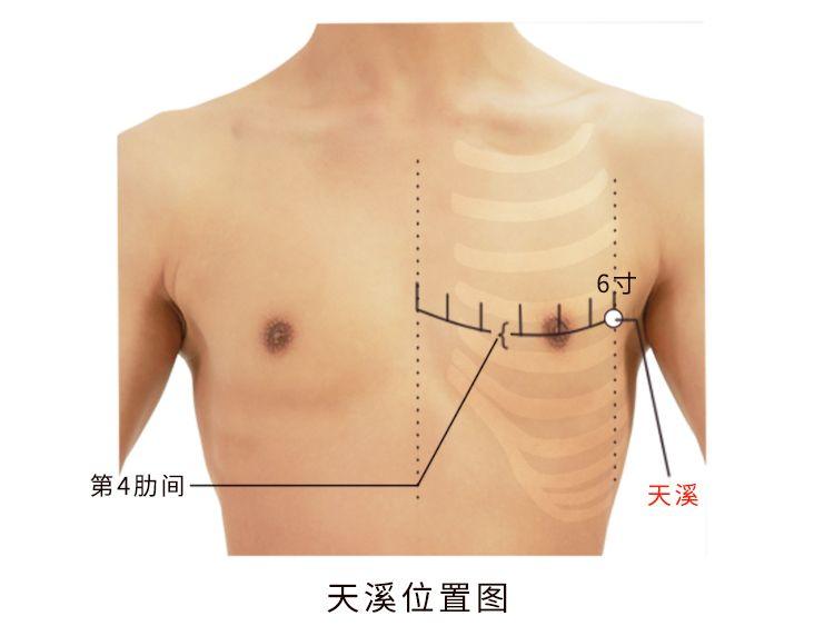 天,天部。溪,路径也。天溪名意指本穴的天部之气循脾经上行。本穴物质为食窦穴传来的水湿之气,在行至本穴的过程中不断吸热,吸热后循脾经进一步上走胸之上部,故名天溪。