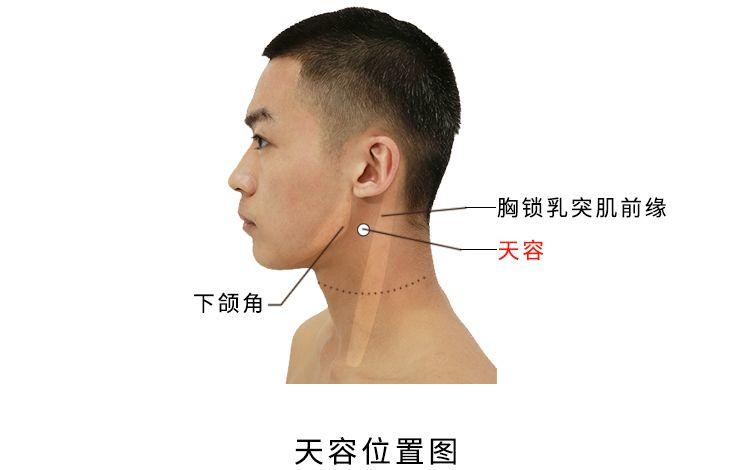 天,天部也。容,容纳、包容也。天容名意指小肠经气血在本穴云集汇合。本穴物质为天窗穴传来的天部湿热之气,至本穴后,湿热之气散热冷却化为天部的云状气态物并聚集于穴内,如被本穴包容一般,故名天容。