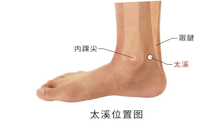 倪海厦老师:注:在内踝高骨与脚后大筋的中间。若是太溪穴上一寸两寸内有压痛点,表示有肾结石。