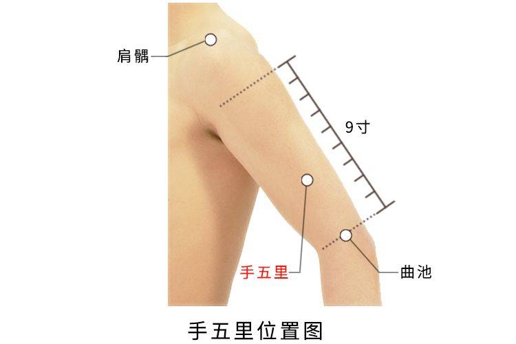 定位: 在臂外侧,当曲池与肩髃连线上,曲池上3寸处。