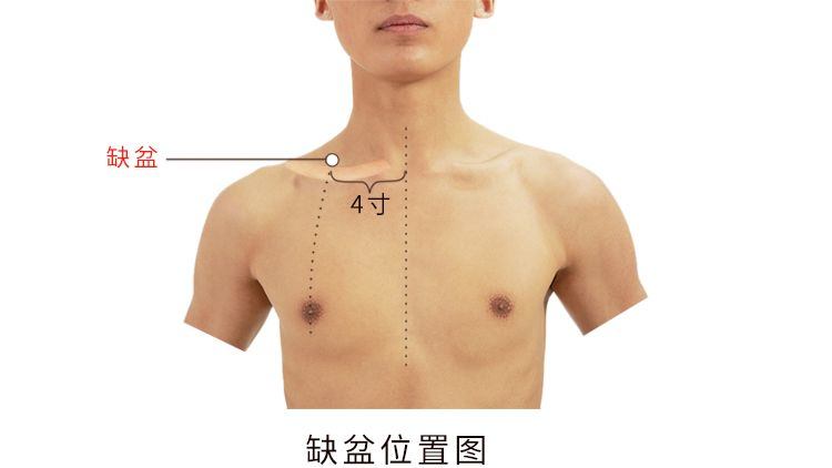 备注: 经言缺盆中满痛者死,外溃不死,此即指缺盆穴的缺散功能。如果缺盆穴肿胀满痛,胃经气血不能经此穴顺利传输,则承泣穴外输的经脉气血就会因本穴的闭塞而上积于头颈部使人致死,但缺盆穴外溃后则不会造成经脉气血阻塞于头,故言缺盆中满痛者死,外溃不死。
