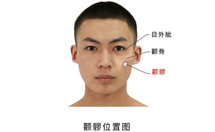 再来是颧髎,颧髎在眼睛这边,眼睛的后方有个凹谷叫做瞳子髎。瞳子髎就是我们讲的太阳穴。那这瞳子髎下三寸,就是颧髎,知道位置就好了,很少下针。颧髎偶尔会用到治上牙痛。