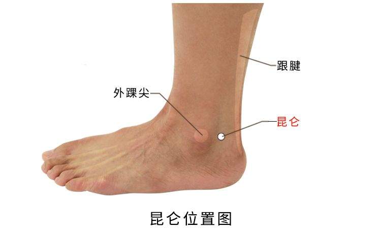 倪海厦老师:注:大筋和外踝裸的中间。治疗后背痛,落胎,所以平常用在生完小孩,胎盘没有下来,可以用昆仑,把胎盘掉出来,这是用在生完小孩以后的。
