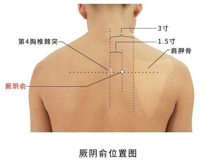 在背部,当第4胸椎棘突下,旁开1.5寸。