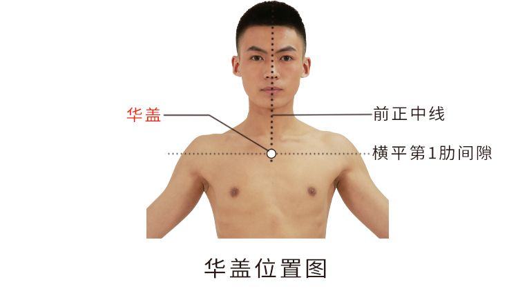 华,华丽也。盖,护盖也。华盖名意指任脉气血在此变为水湿浓度更大的水湿之气。本穴物质为紫宫穴传来的天部水气,至本穴后,此气进一步散热吸湿而变为水湿浓度更大的水湿之气,此气如同人体的卫外护盖一般,故名华盖。