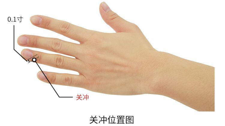 定位: 在手环指末节尺侧,距指甲角0.1寸(指寸)。