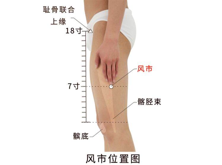 定位: 在大腿外侧部的中线上,当腘横纹上7寸。或直立垂手时,中指尖处。